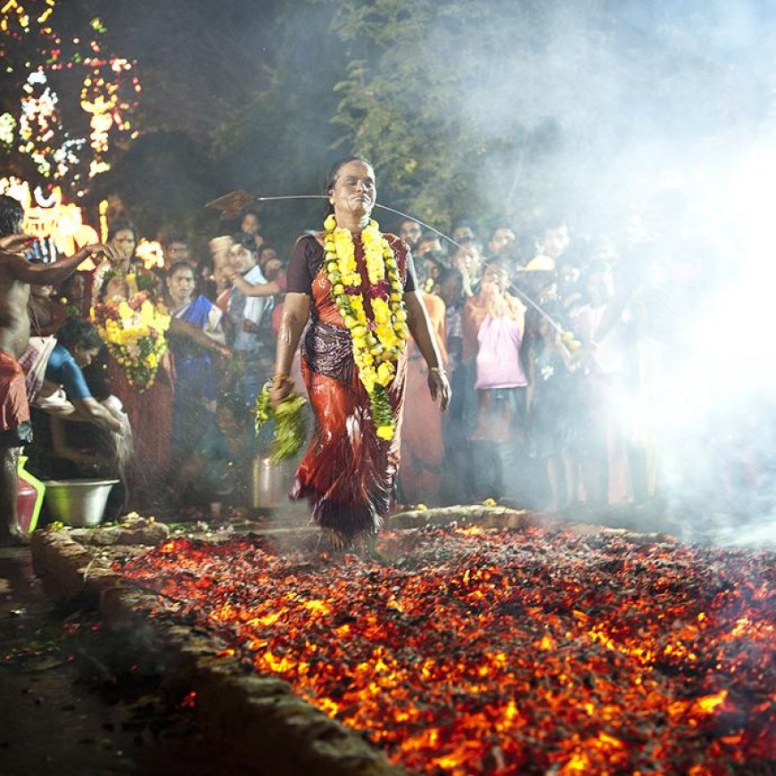 - The ritual is simple, scary, and absolutely breathtaking. After weeks of strict fasting and prayers, participants line up to walk straight across a long, thick bed of blazing charcoal. They don't run; they walk slowly, often carrying pots of milk or other offerings.