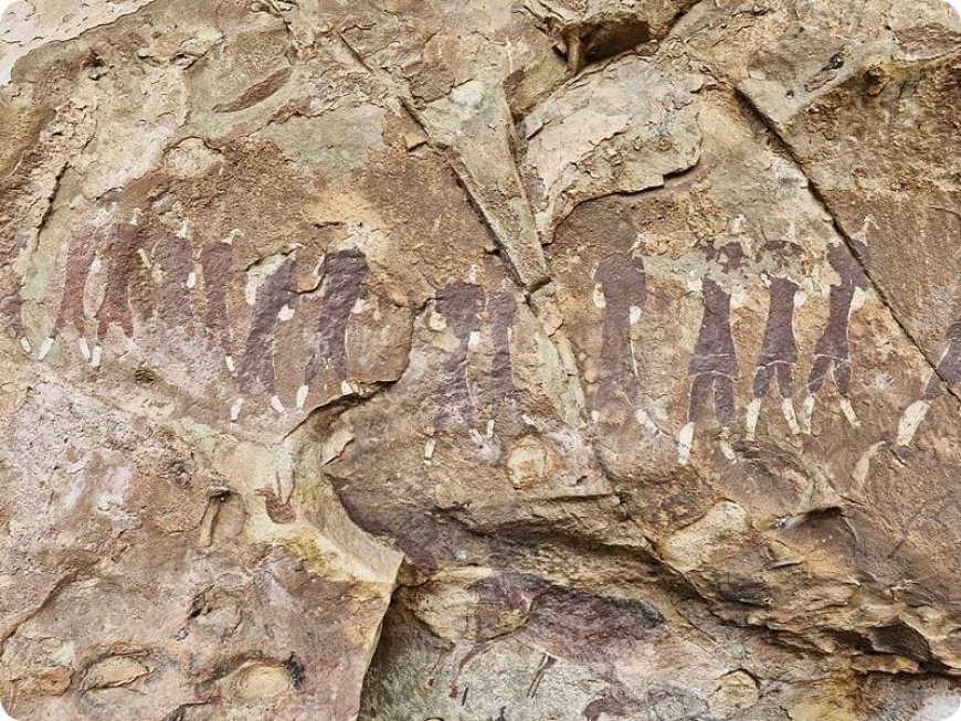 The posture: The figures are often shown hunched over. This is more than just a dance move; it mimics the posture of a dying Eland, clearly connecting the animal's sacrifice to the shaman's fleeting "death" during the trance.
