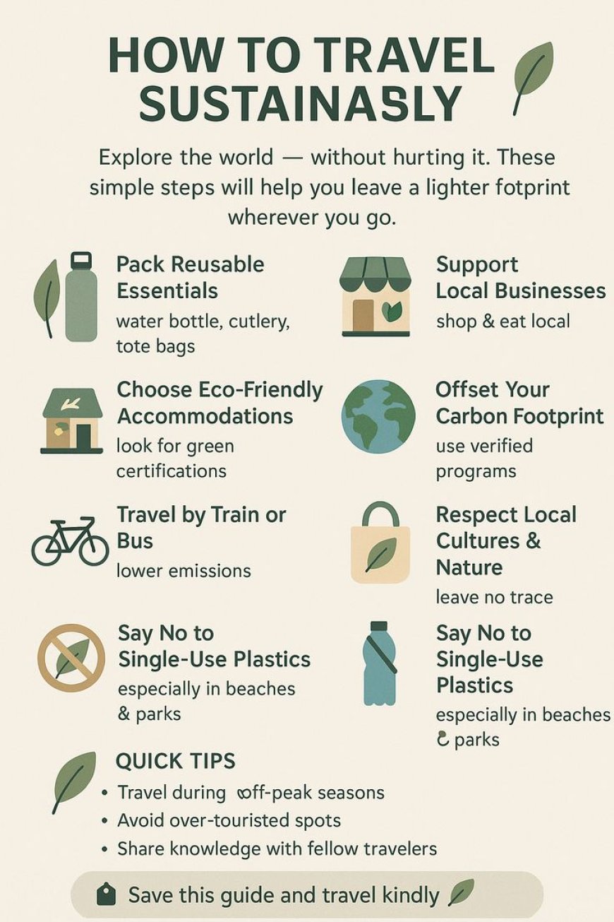 Simple actions like conserving water, walking short distances, and avoiding single-use plastics help protect these fragile environments for future visitors.