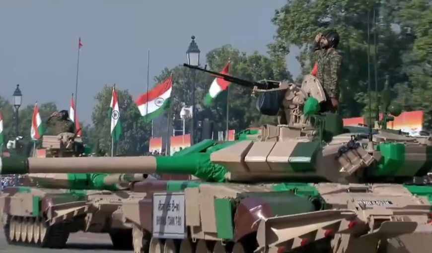 Armored Might: The T-90 Bhishma and the indigenous Arjun tank led the mechanised columns, followed by the BrahMos supersonic missile—one of the world's most feared weapons.