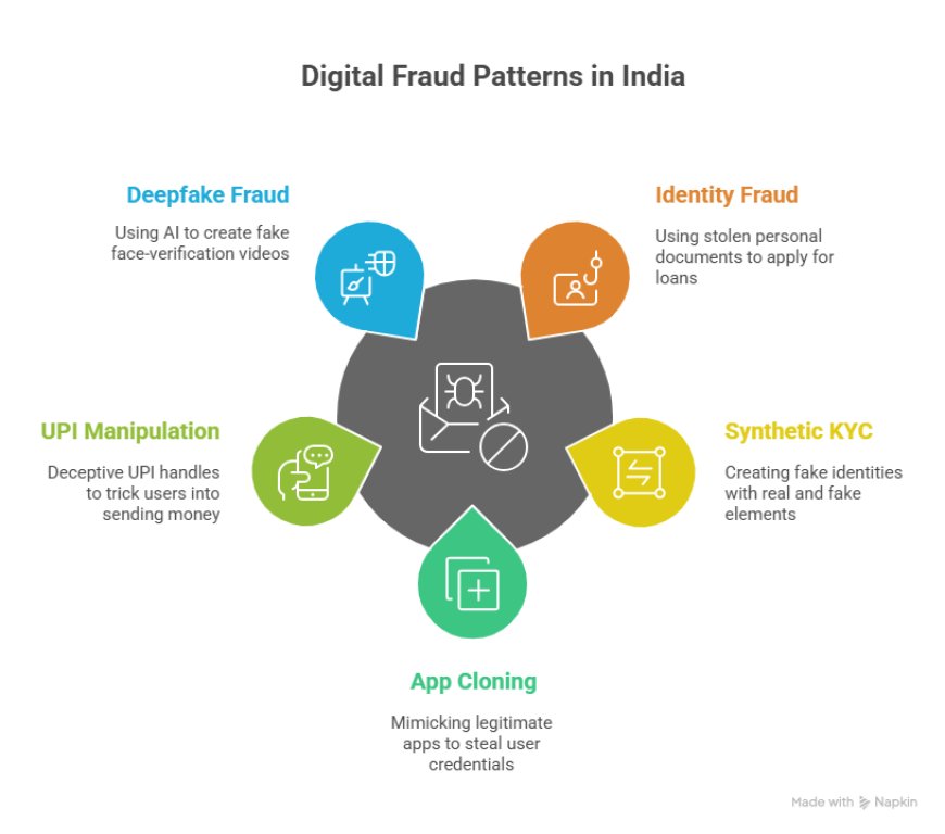 - Fraud became industrialised — from mule accounts to deepfake KYC, phishing, and UPI switch fraud.